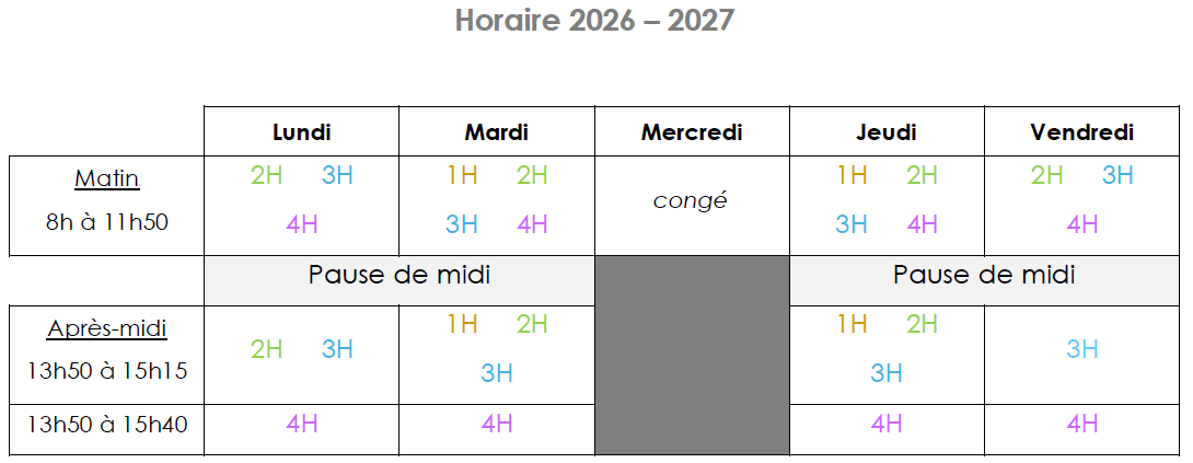 Concernant les jours d’école, les élèves viennent en classe selon la fréquentation de leur degré scolaire respectif.